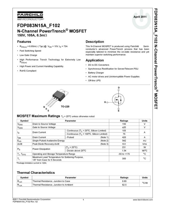 N-Channel PowerTrench<sup>®</sup> MOSFET 150V, 105A, 8.3mΩ