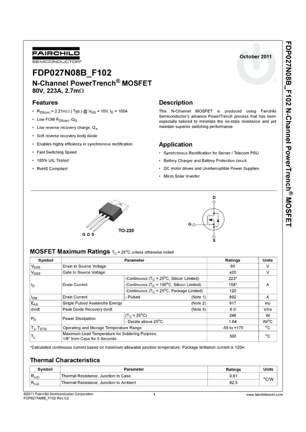 N-Channel PowerTrench<sup>®</sup> MOSFET 80V, 223A, 2.7mΩ