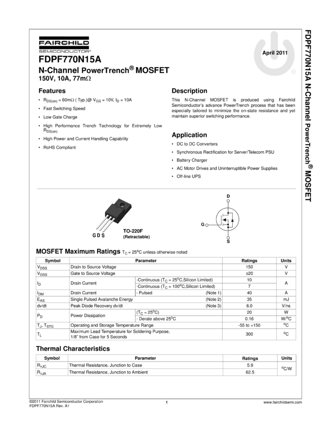 N-Channel PowerTrench<sup>®</sup> MOSFET 150V, 10A, 77mΩ