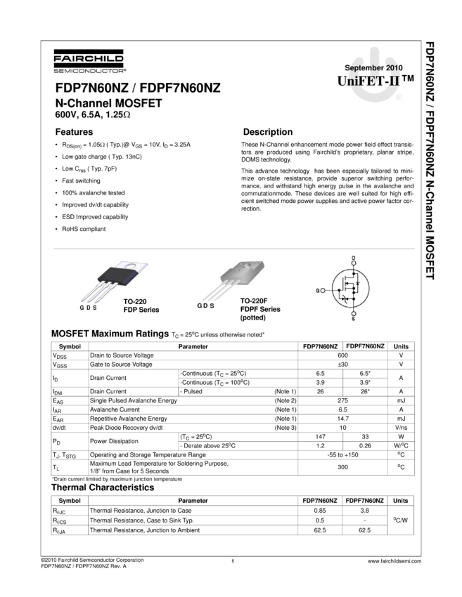 N-Channel UniFET<sup>TM</sup> II MOSFET 600V, 6.5A, 1.25Ω