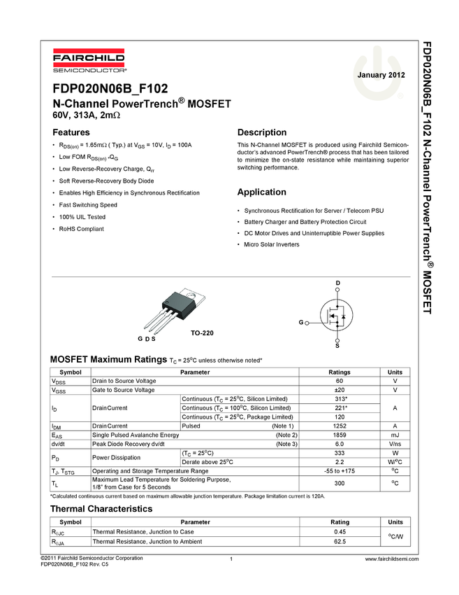 N-Channel PowerTrench<sup>®</sup> MOSFET 60V, 313A, 2mΩ