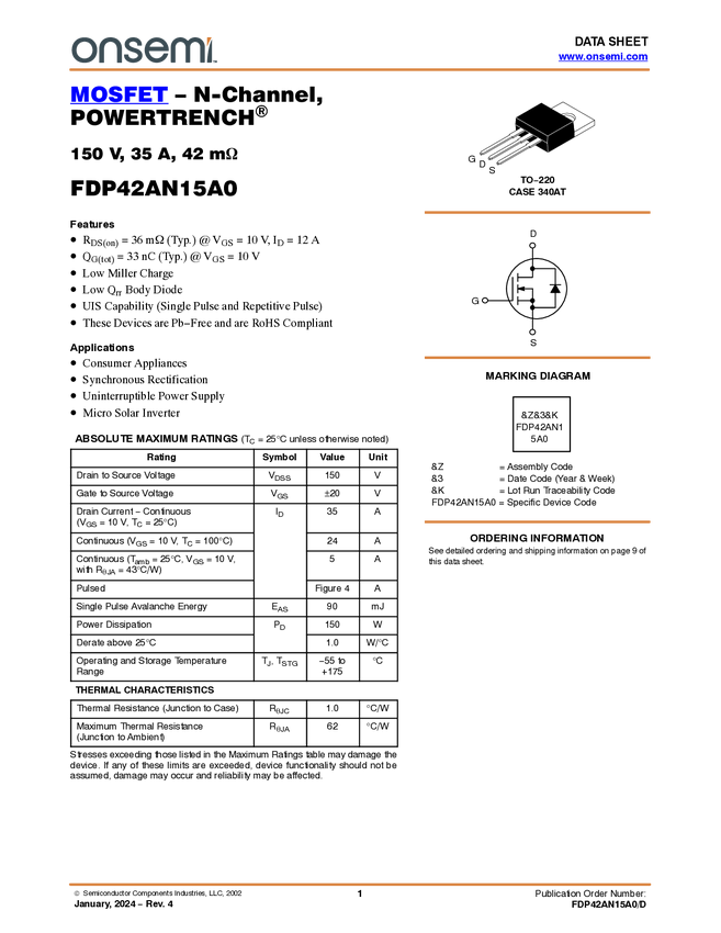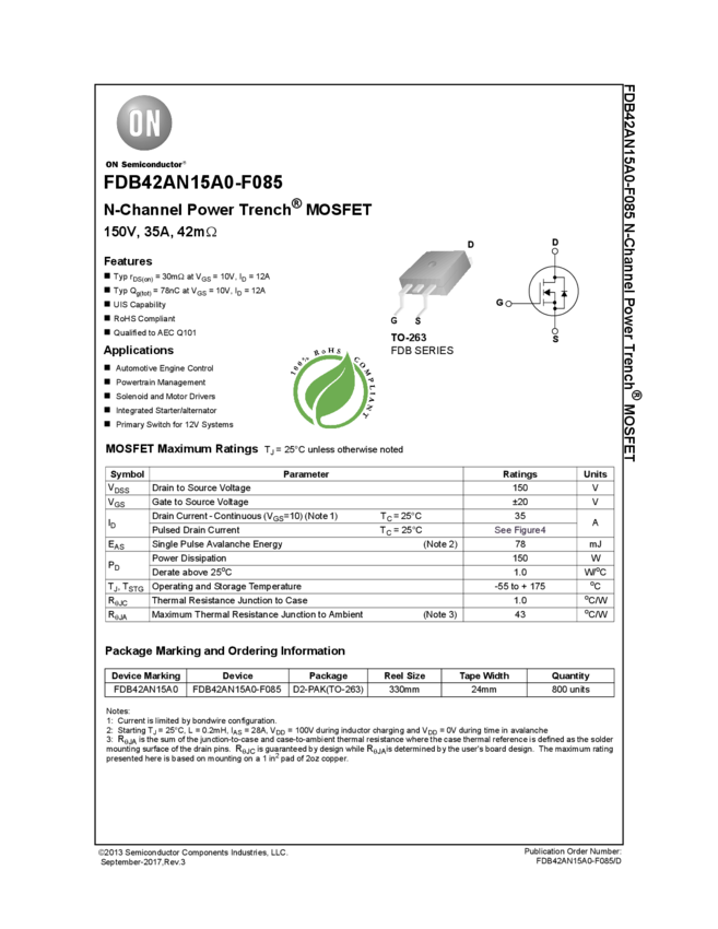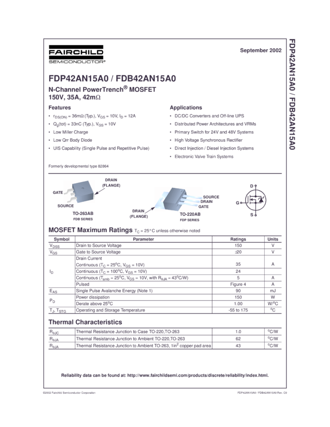 N-Channel PowerTrench® MOSFET 150V, 35A, 42mΩ