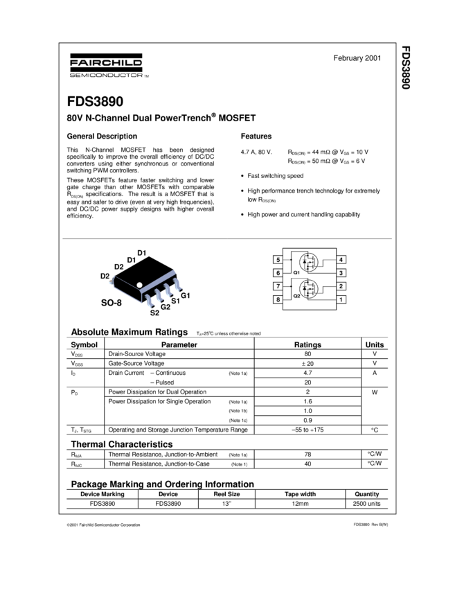 80V N-Channel Dual PowerTrench<sup>® MOSFET 4.7A, 44mΩ