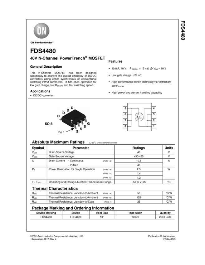 40V N-Channel PowerTrench<sup>® MOSFET, 10.8A, 12mΩ