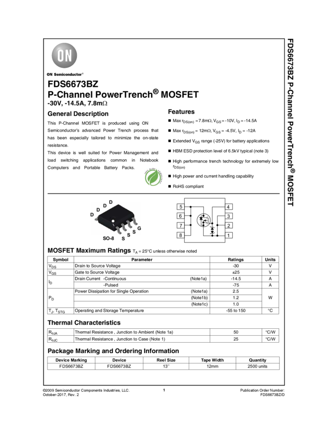 -30V, -14.5A, 7.8mΩ, SO-8 P-Channel PowerTrench®