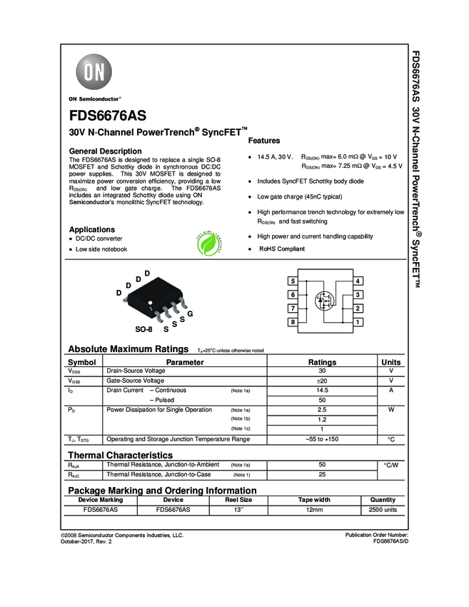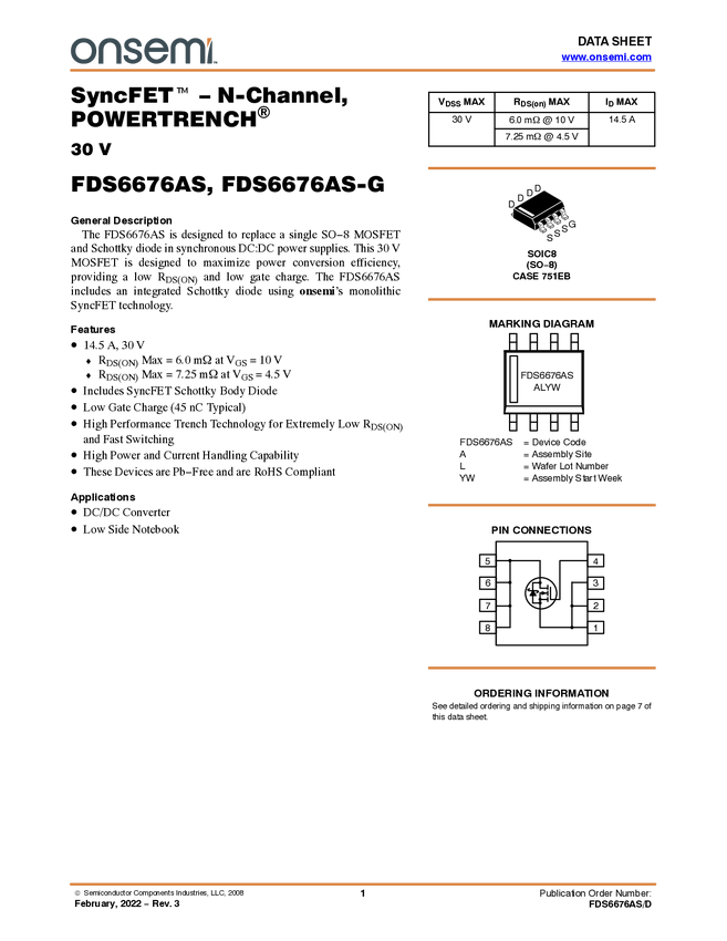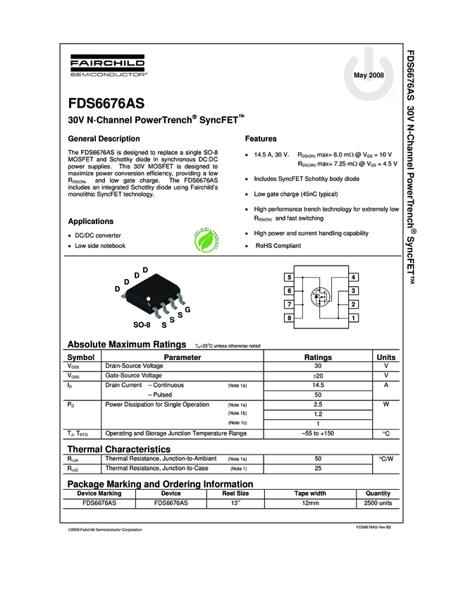30V N-Channel PowerTrench<sup>® SyncFET™ 14.5A, 6.0mΩ