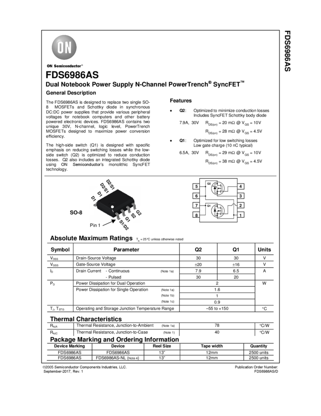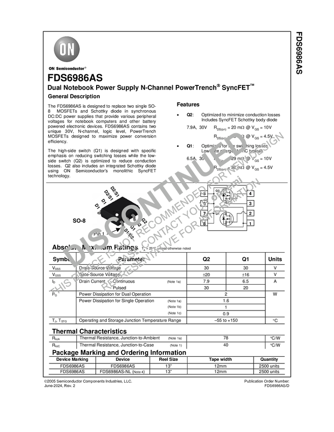 Dual Notebook Power Supply N-Channel PowerTrench<sup>® SyncFET™ 30V