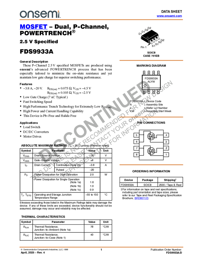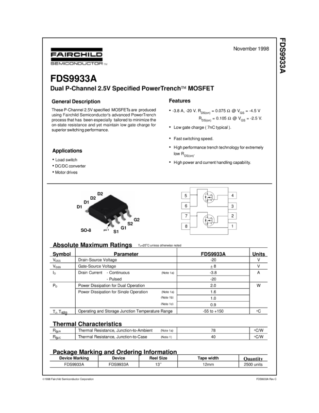 Dual P-Channel 2.5V Specified PowerTrench® MOSFET