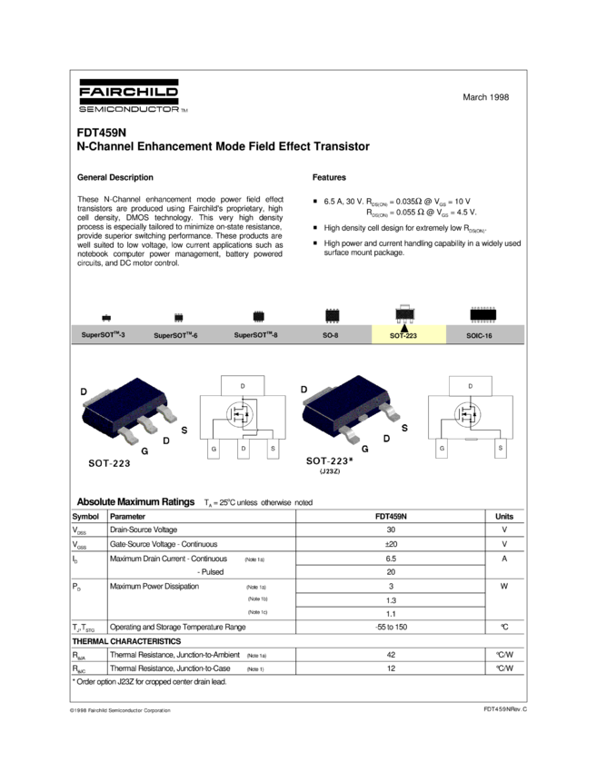 N-Channel Enhancement Mode Field Effect Transistor 30V, 6.5A, 35mΩ