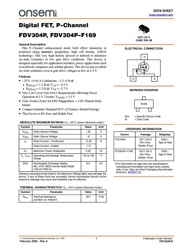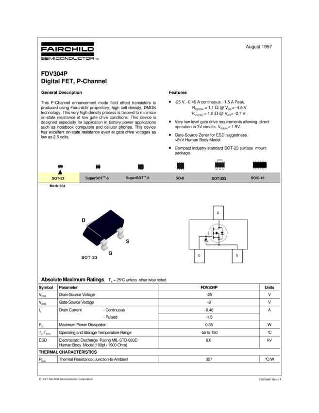 P-Channel Digital FET -25V, -0.46A, 1.1Ω