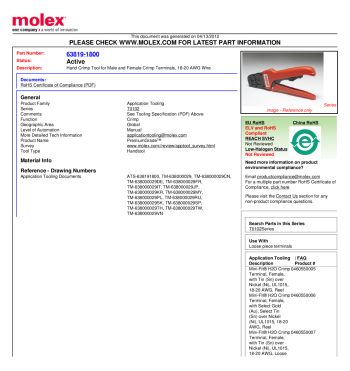 Locator Assembly for Mini-Fit Jr. Male and Female Crimp Terminals