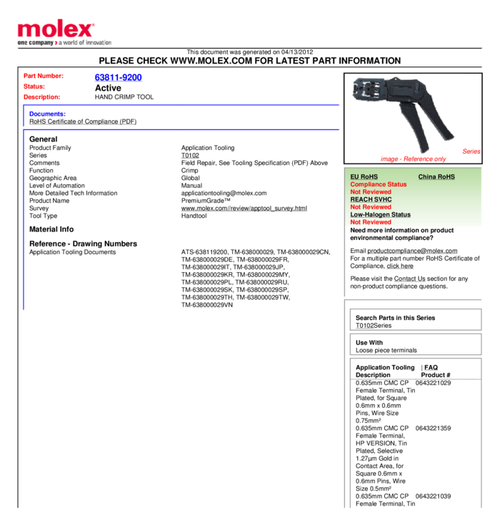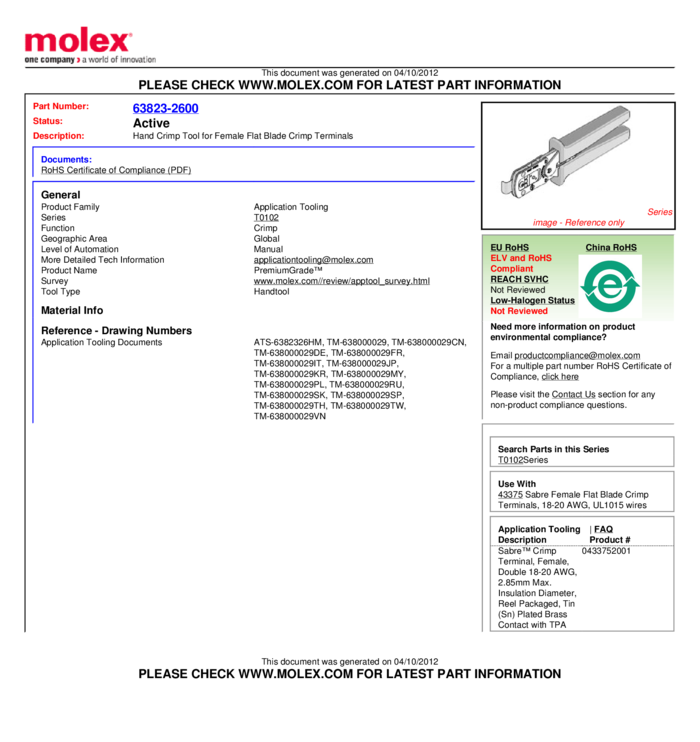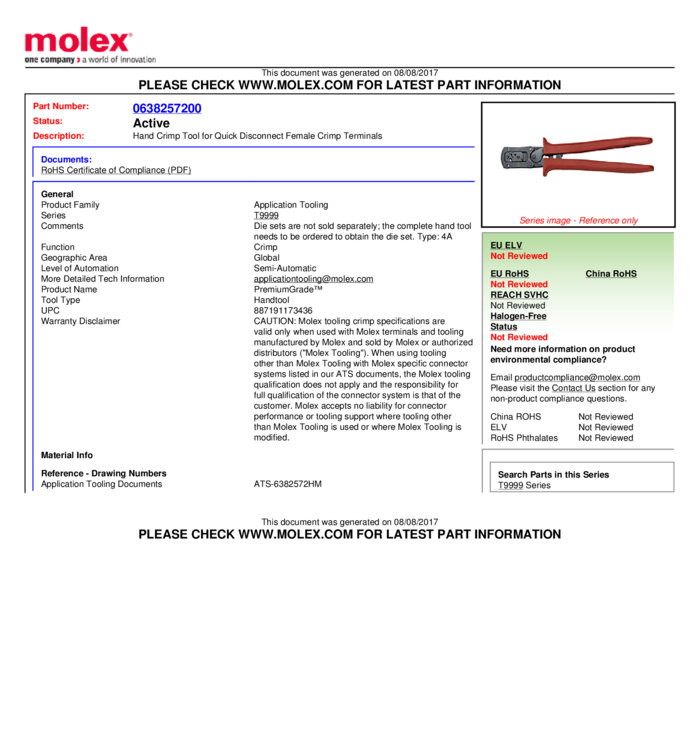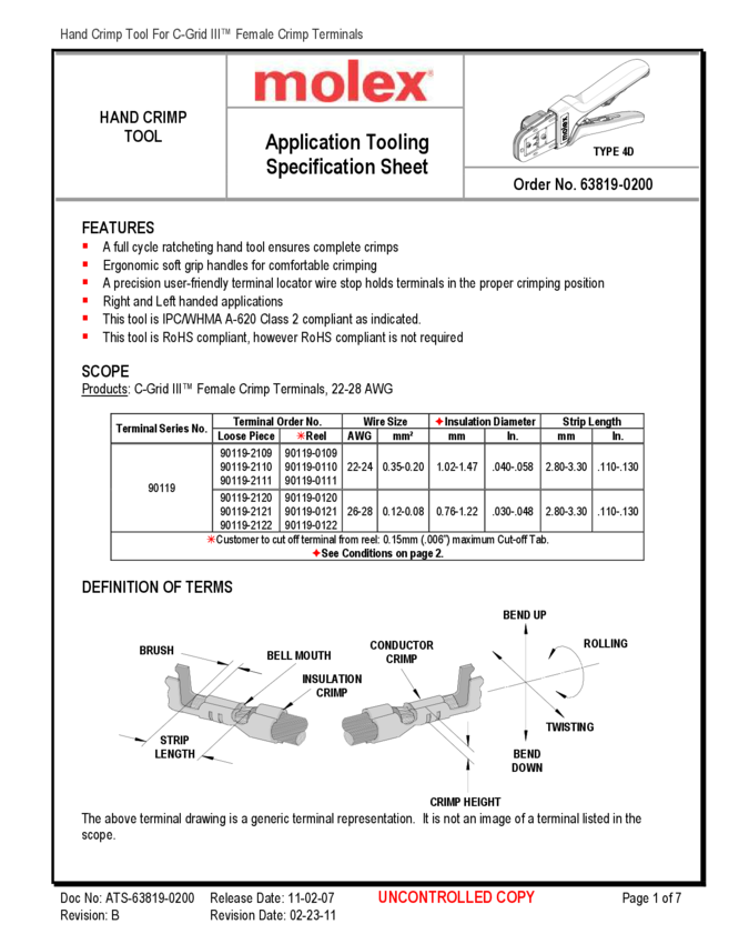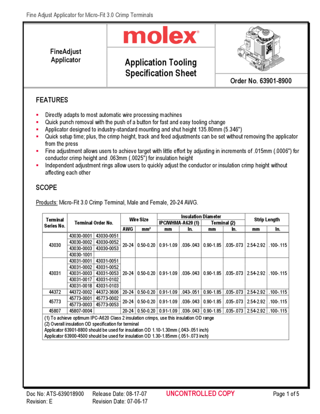 FineAdjust Applicator for Micro-Fit 3.0 Male and Female Crimp Terminals