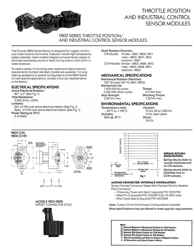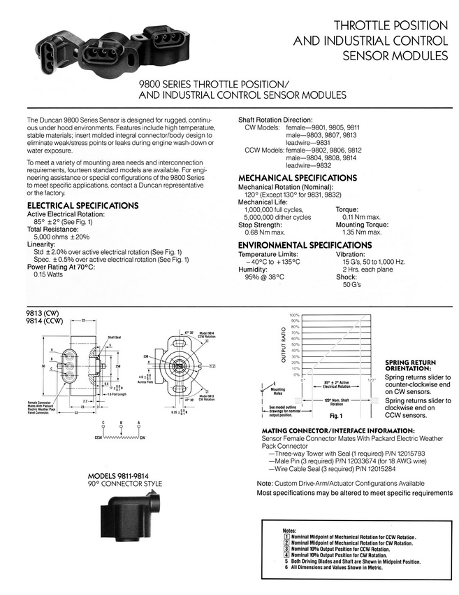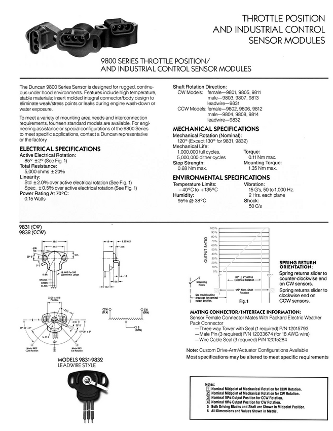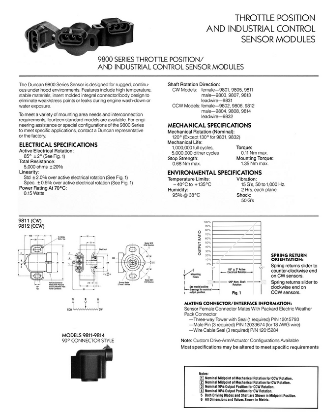 Przemysłowy czujnik pozycji do złącz hermetycznych CW model Kąt elektryczny 85+-2 st. mech. 120 st. Rezystancja 5 kohm, -40+135 st; wilg. 95%; sprężyna powrotna Shaft rot.dir. CW model Female