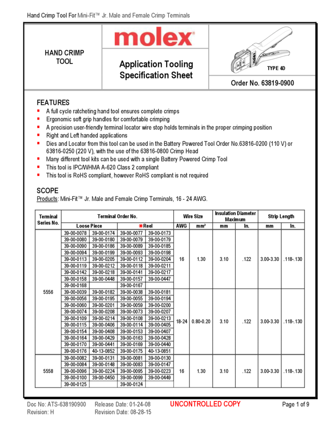 Hand Crimp Tool for Sealed Mini Fit H20 Male and Female Crimp Terminals 18-20 AWG Wire