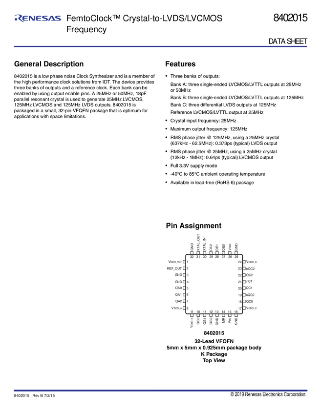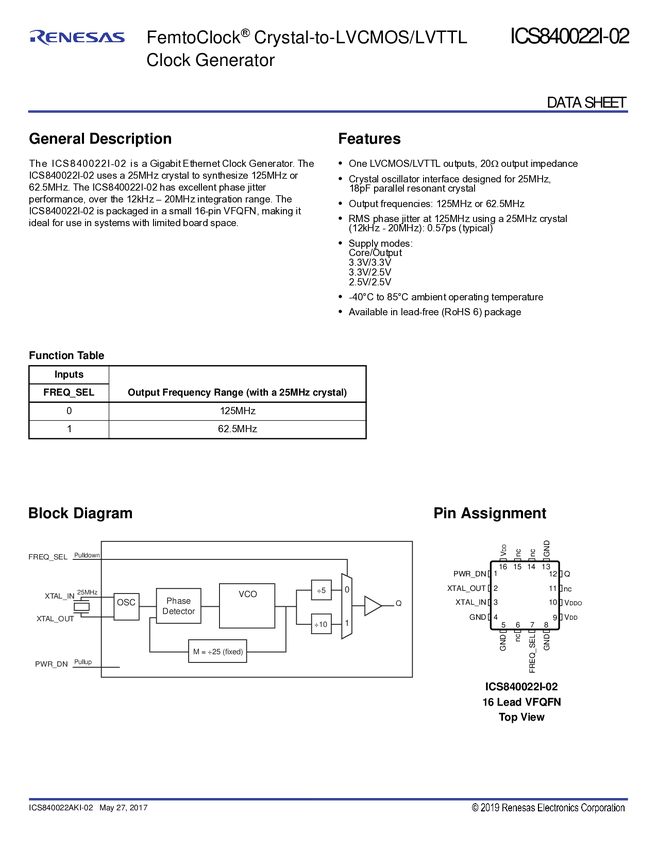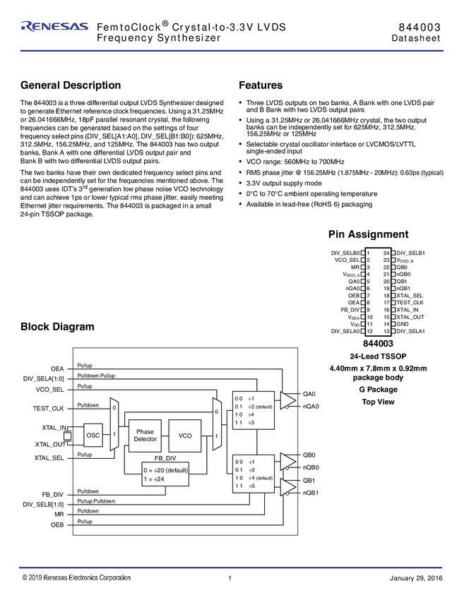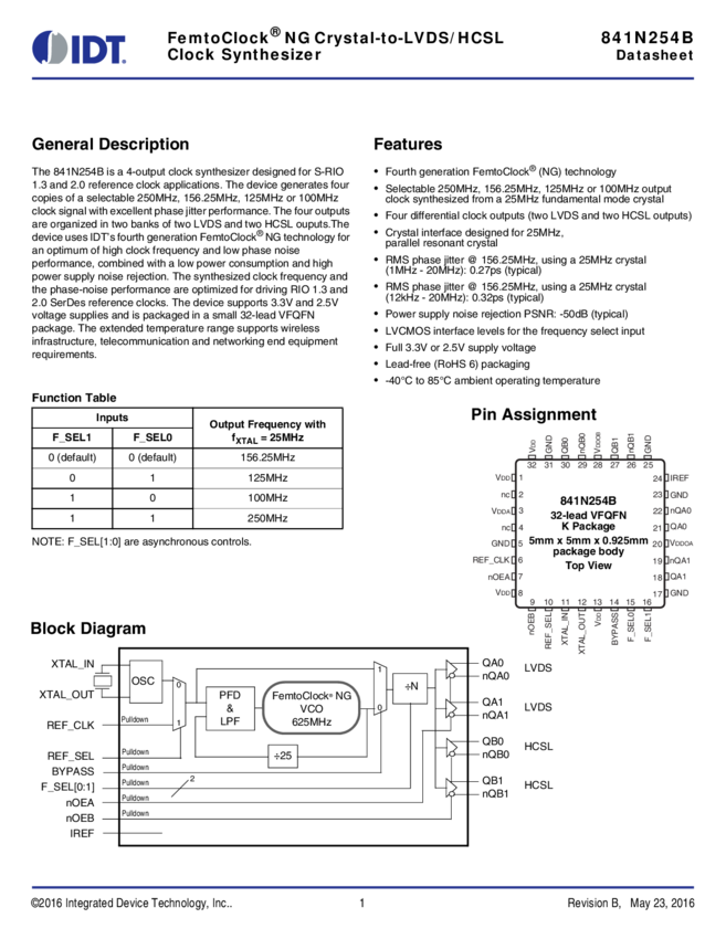 FemtoClock Crystal-to-LVDS/LVCMOS Frequency