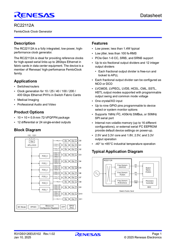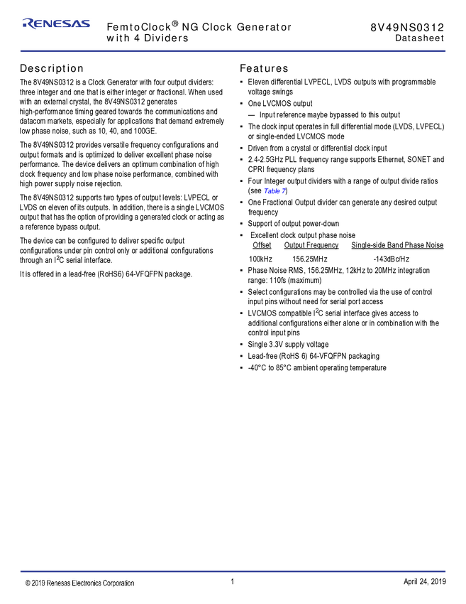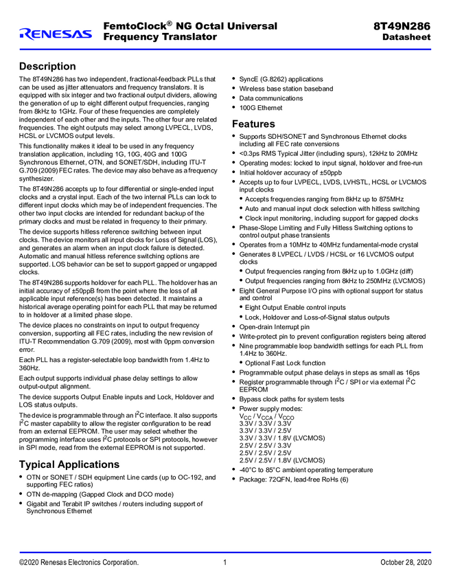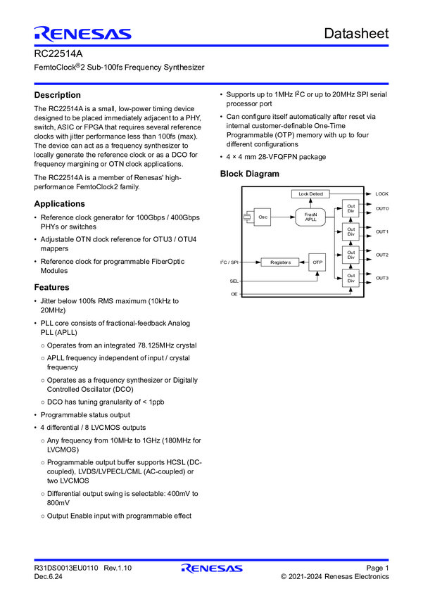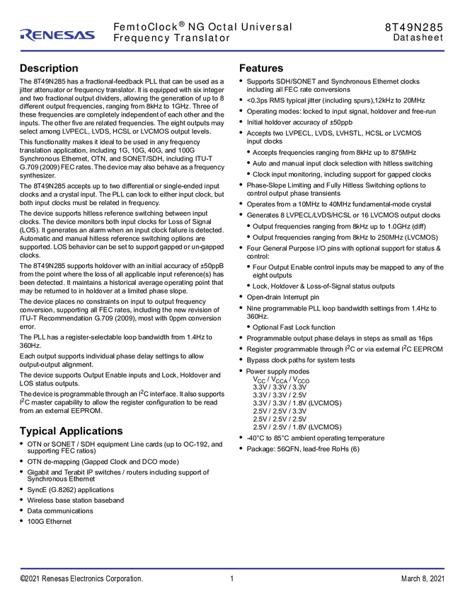 FemtoClock NG Universal Frequency Translator (2-in/1-PLL/8-out)