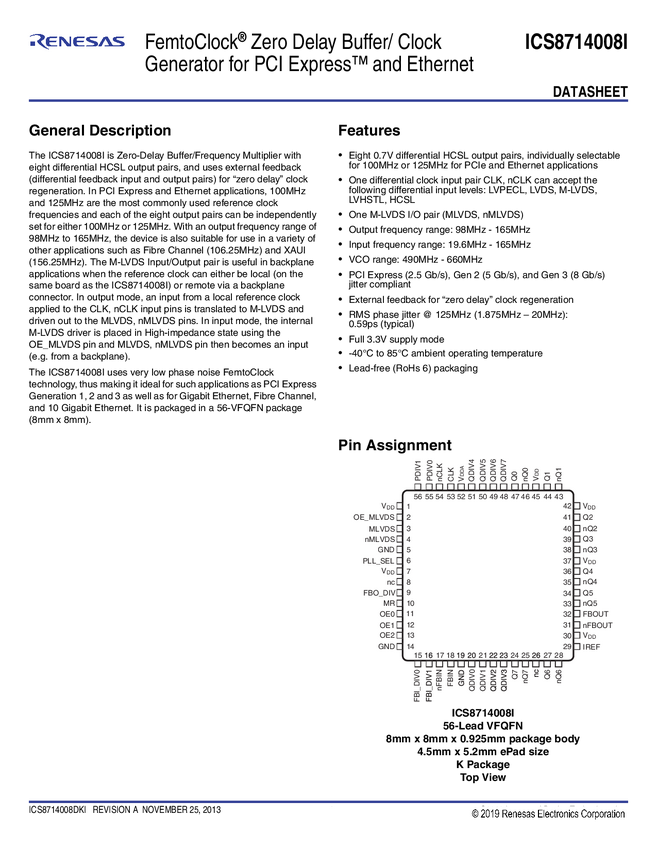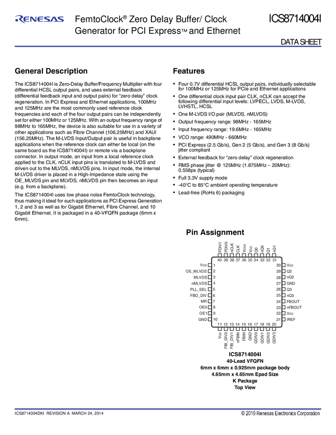 FemtoClock Zero Delay Buffer/Clock Generator for PCI Express and Ethernet