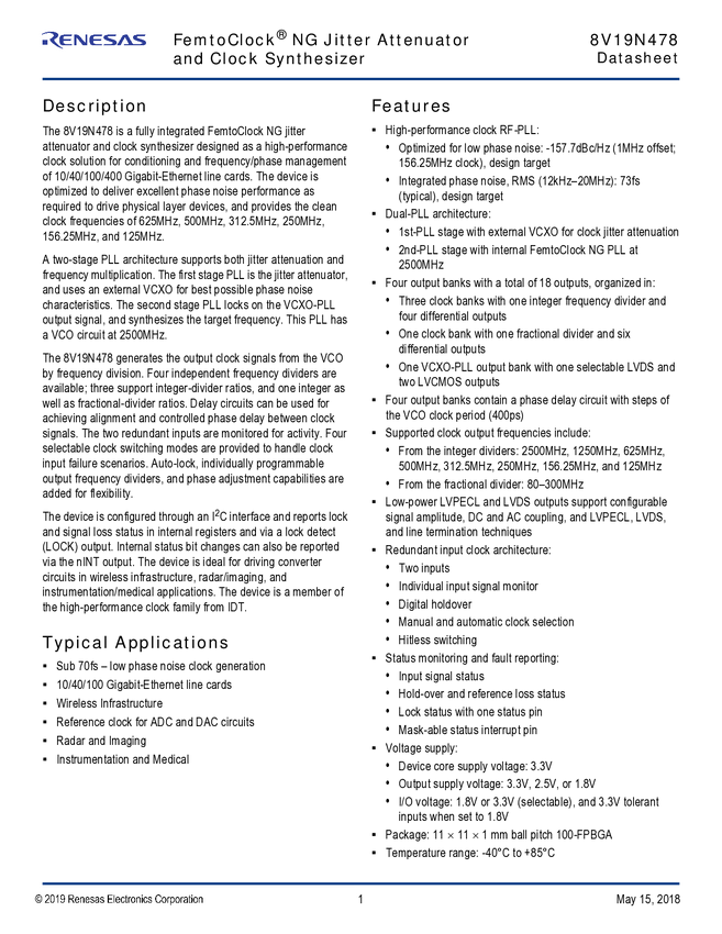 FemtoClock NG Jitter Attenuator and Clock Synthesizer