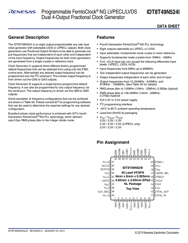 FemtoClock NG Universal Frequency Translator (4-in/2-PLL/8-out)