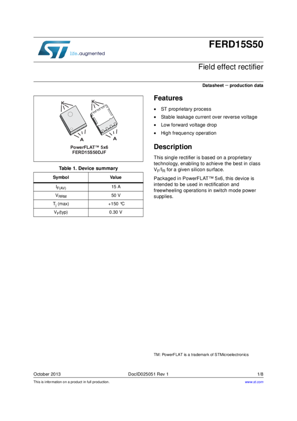 Field-Effect Rectifier Diode (non Schottky) 50V 15A 8-Pin Power FlAT T/R