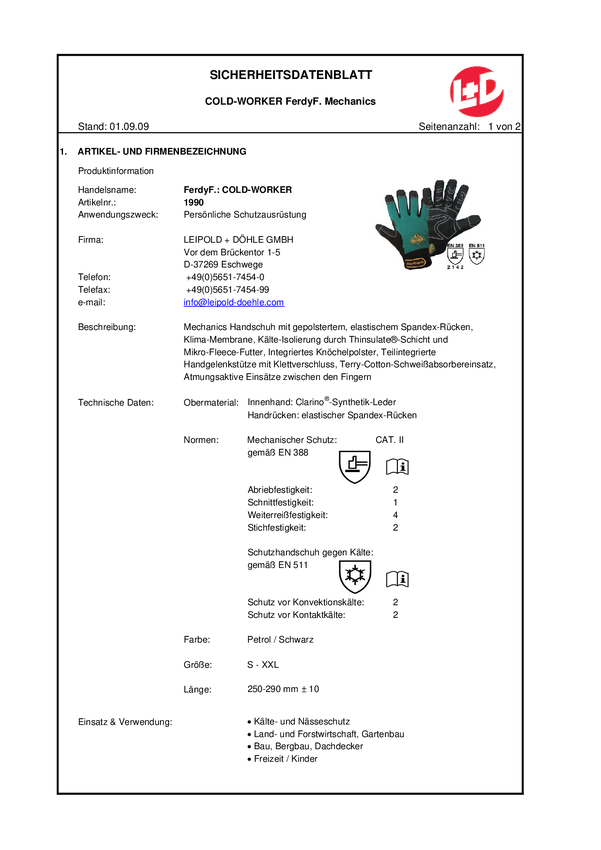Rękawice montażowe FerdyF. Mechanics COLD WORKER 1990-10, Rozmiar rękawic: 10, XL, czarny, niebieski