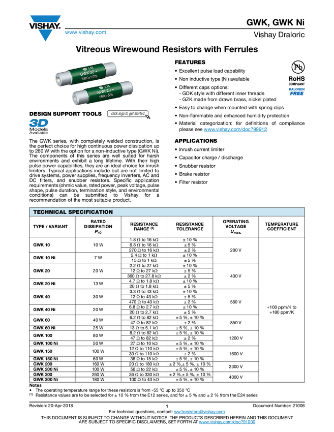 Vitreous Wirewound Resistors with Ferrules