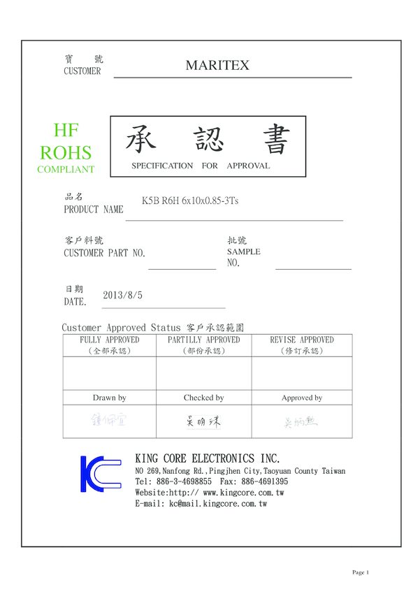 Ferryt EMI, Z1=29Ω przy 25MHz, Z2=47Ω przy 100MHz, R=6mΩ Imax=6A, do montażu SMD, KingCore