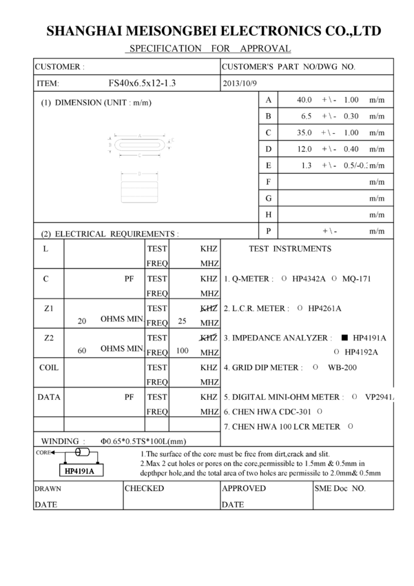 Rdzeń ferrytowy, EMI, do kabli wstążkowych RC26, [FS40X6.5X12-1,3] Meisongbei