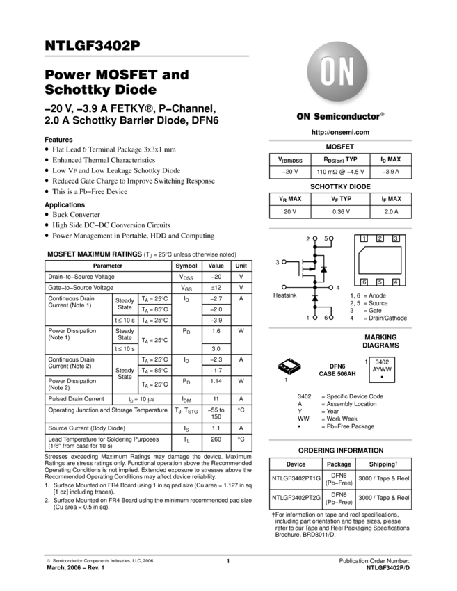 Power MOSFET -20V -3.9A 140 mOhm P-Channel WDFN6 FETky