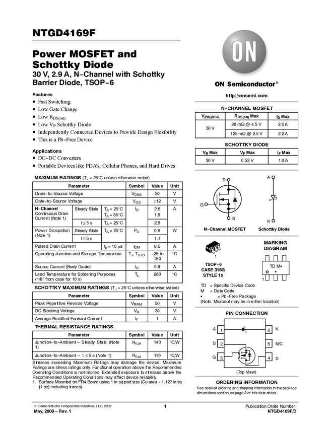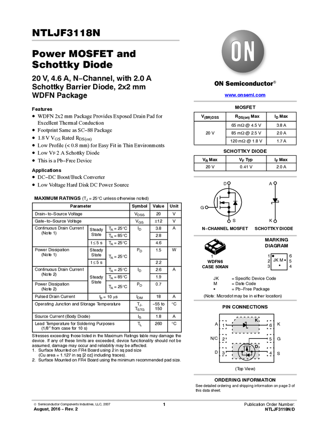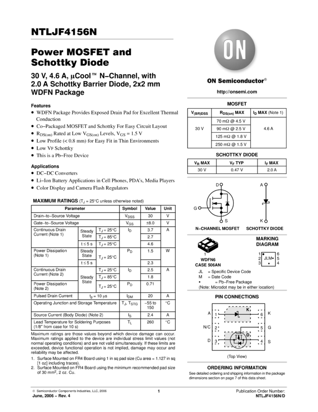 Power MOSFET 30V 4.6A 70 mOhm Single N-Channel WDFN-6 FETky