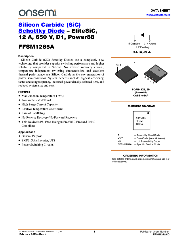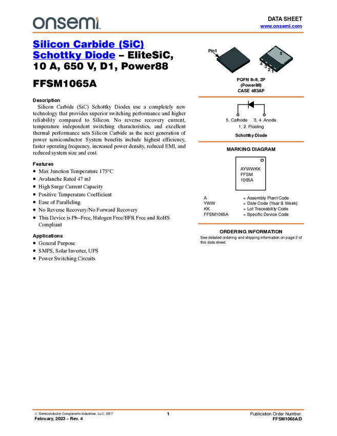 Silicon Carbide (SiC) Schottky Diode – EliteSiC, 4 A, 650 V, D1, Power88