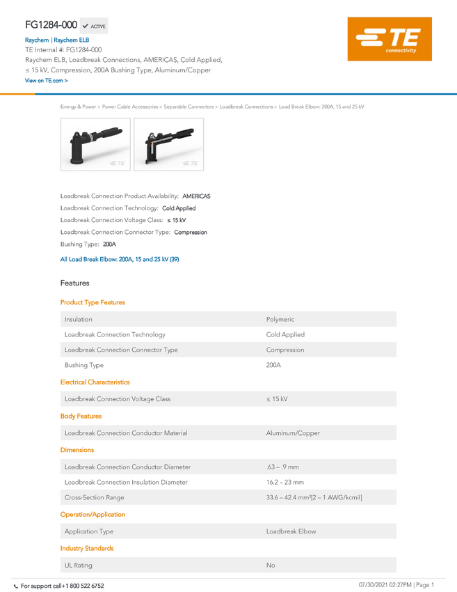 TE Connectivity TE TEE Switchgear Connection System FG1284-000, 1 szt.