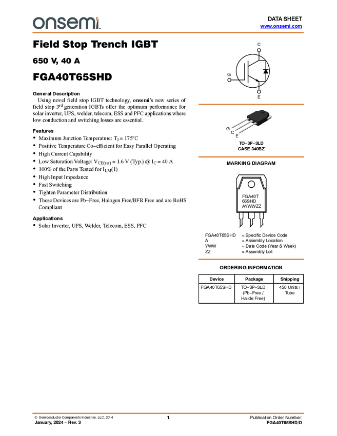 IGBT, 650 V, 40 A Field Stop Trench