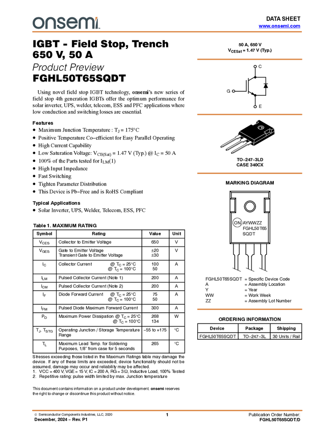 IGBT - 650 V 50 A FS4 low Vce(sat) IGBT with full rated copack diode