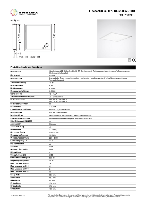 Lampa LED do wilgotnych pomieszczeń Trilux FidescaSDG3 #7680951 7680951, 41 W, 5500 lm