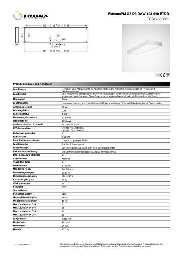 Lampa LED do wilgotnych pomieszczeń Trilux FidescaPMG3 #7680351 7680351, 82 W, 10300 lm