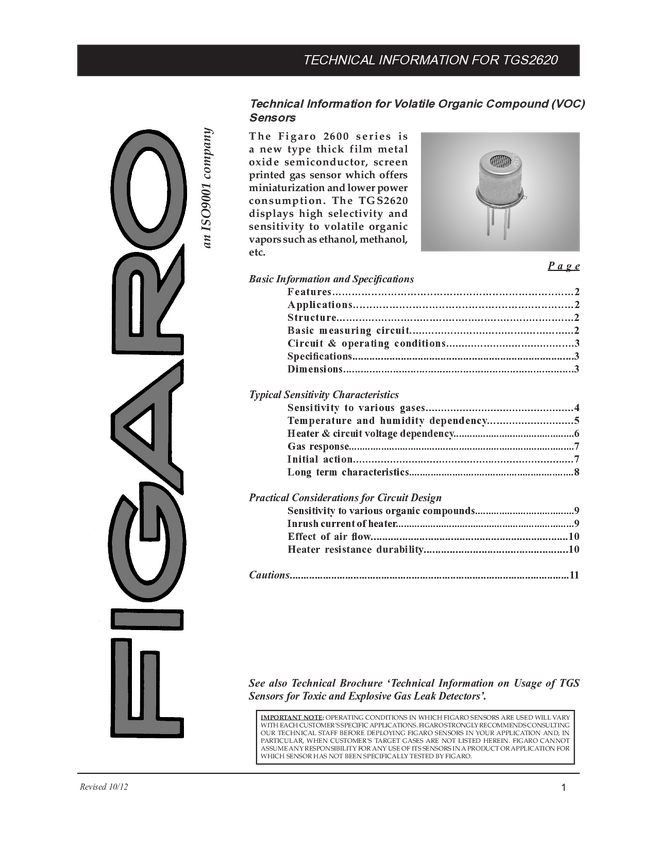 Czujnik jakości powietrza, Figaro TGS 2600-B00, 9,2 mm x 7,8 mm, 5 V
