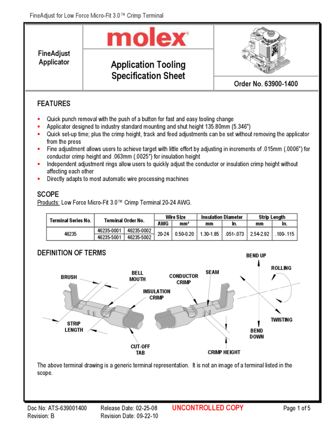 FineAdjust Applicator For CLIK-Mate Wire-to-Board Crimp Terminals