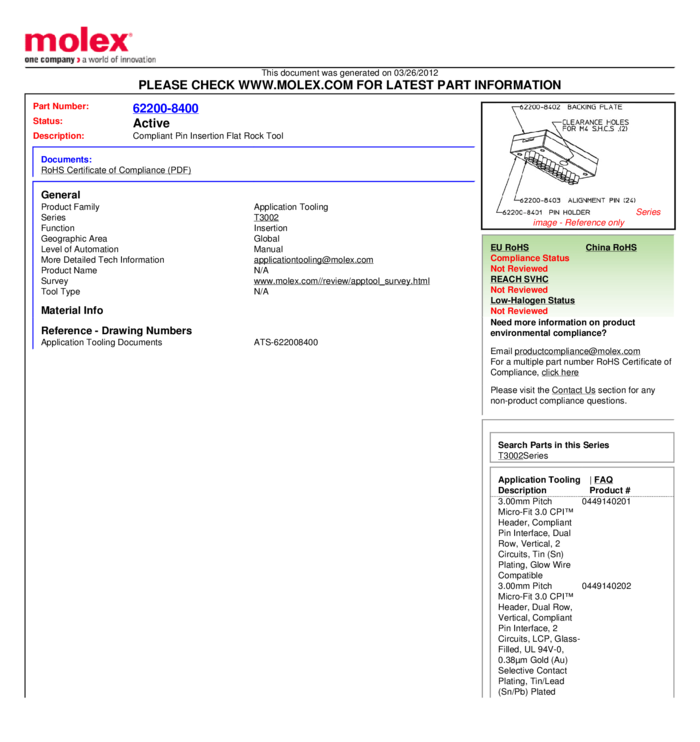 Locator Assembly for Low Force Micro-Fit 3.0 Crimp Terminals