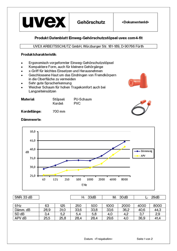 uvex 2112012 com4-fit Zatyczki do uszu 24 dB wielokrotnego użytku EN 352-2 100 par(a)