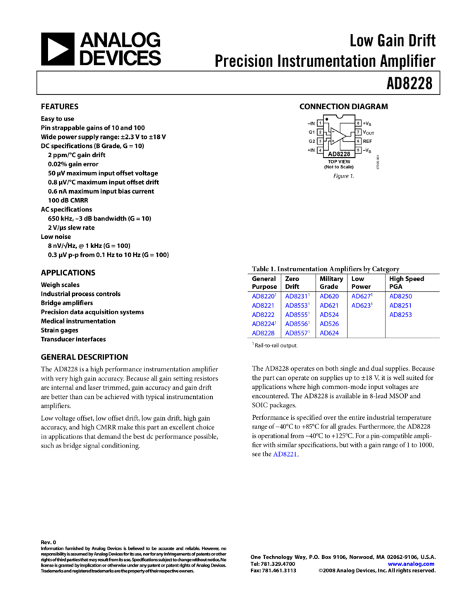 AD8228: Low Gain Drift Precision Instrumentation Amplifier Fixed G = 10, 100