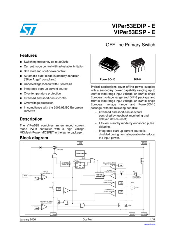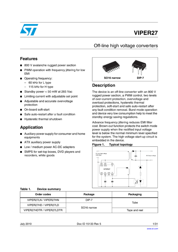 VIPerPlus family: fixed frequency high performance off line high voltage converter
