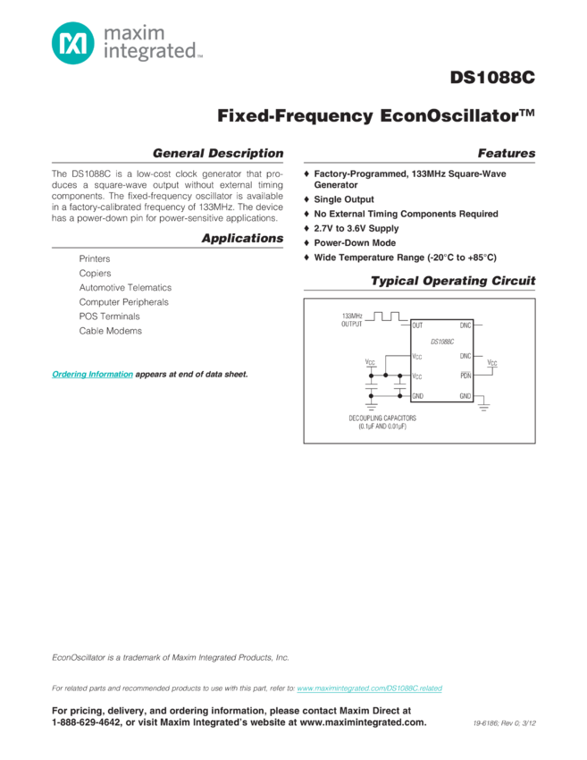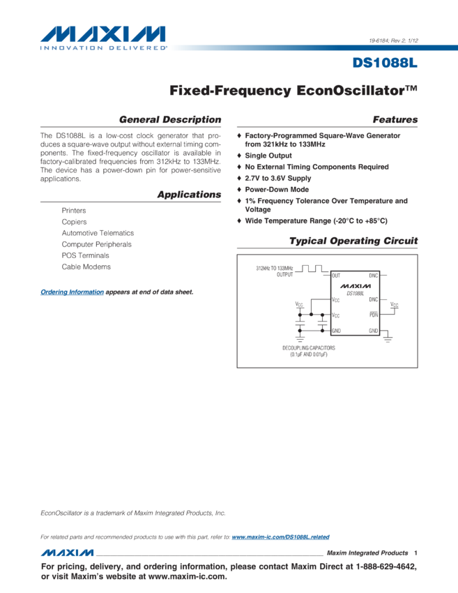 DS1088, DS1088L Fixed-Frequency EconOscillator™