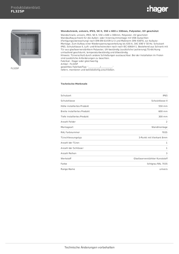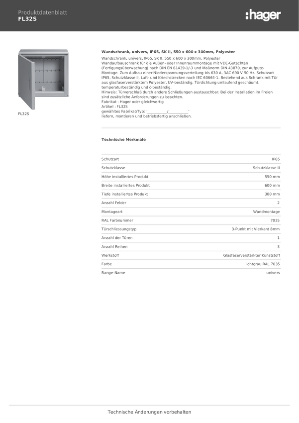 Hager FL32S Szafka ścienna 600 x 550 x 300 tworzywo sztuczne szaro-biały (ral 7035) 1 szt.