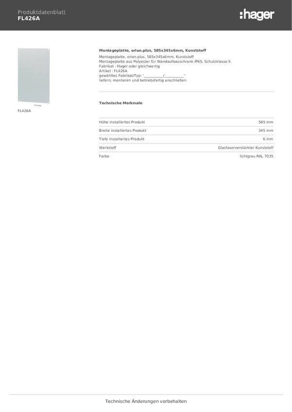 Hager FL426A Płyta montażowa tworzywo sztuczne 1 szt.