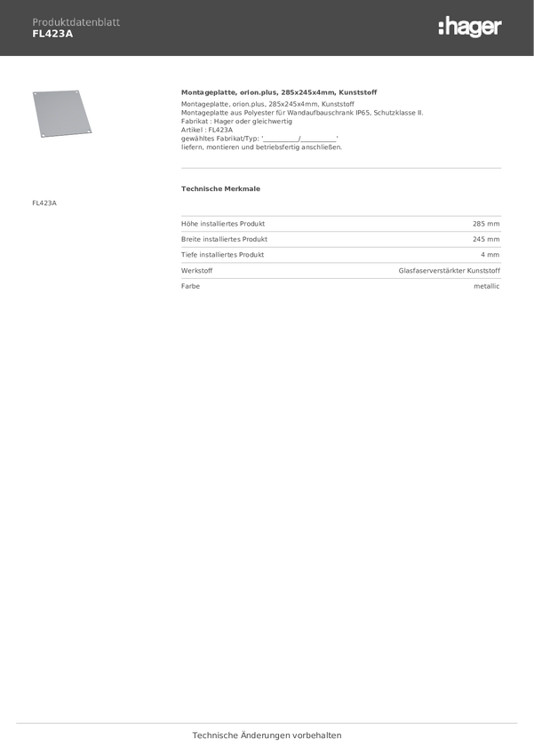 Hager FL423A Płyta montażowa tworzywo sztuczne 1 szt.