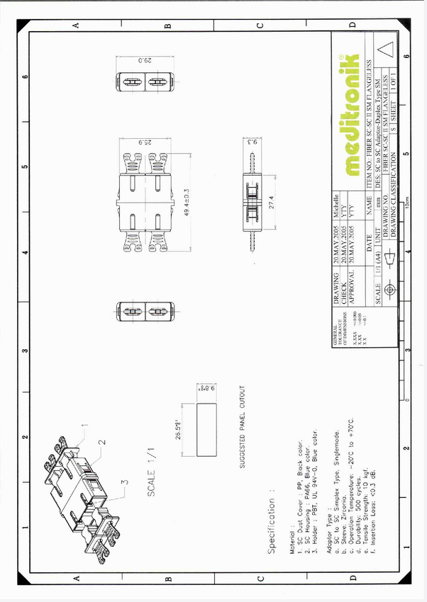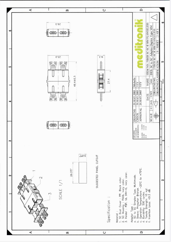 Adapter światłowodowy SC-SC simplex SM Flangeless