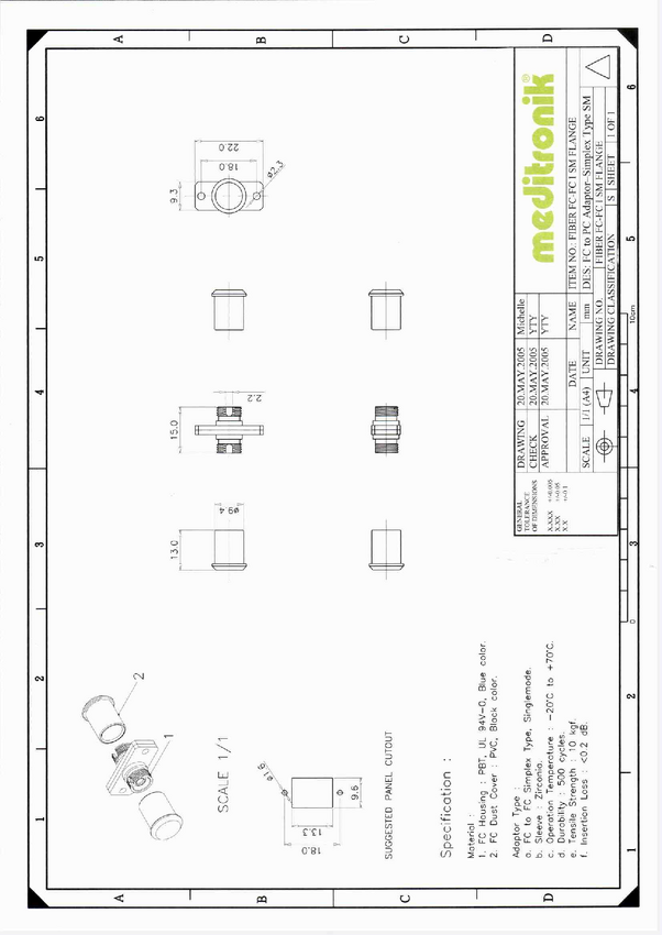 Adapter światłowodowy FC-FC simplex SM Flangeless