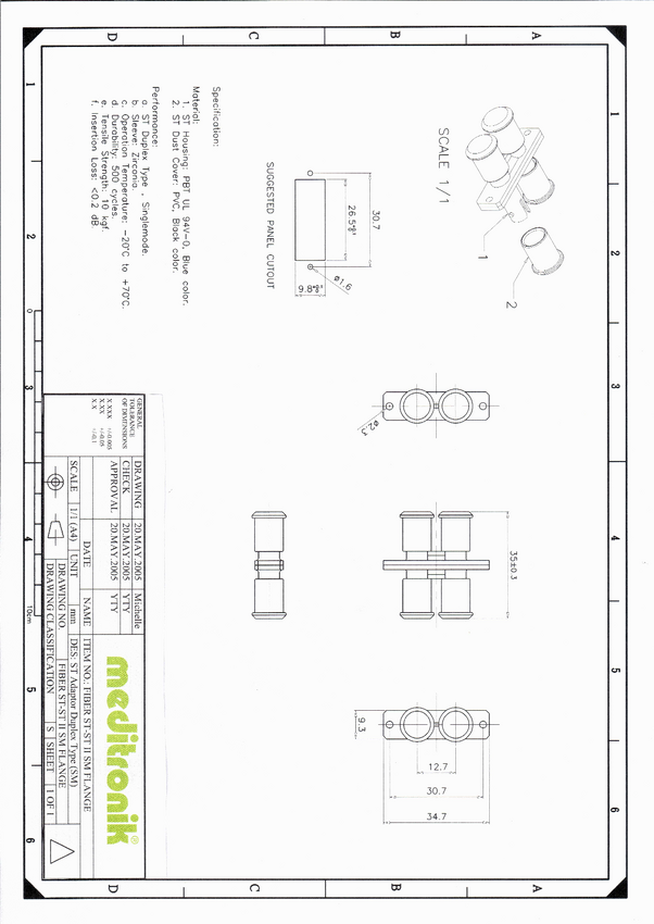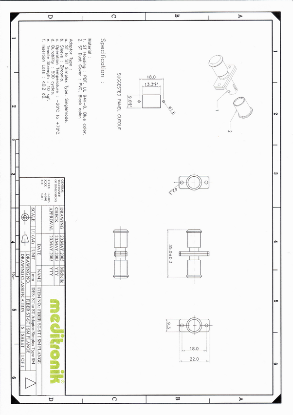 Adapter światłowodowy ST-ST simplex SM Flangeless