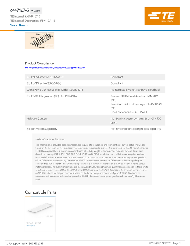 TE Connectivity TE AMP Flexstrip - Flexpac Products 6447167-5, 1 szt.